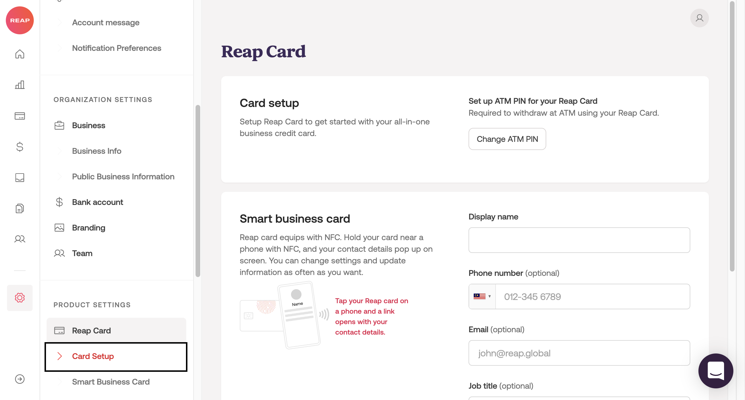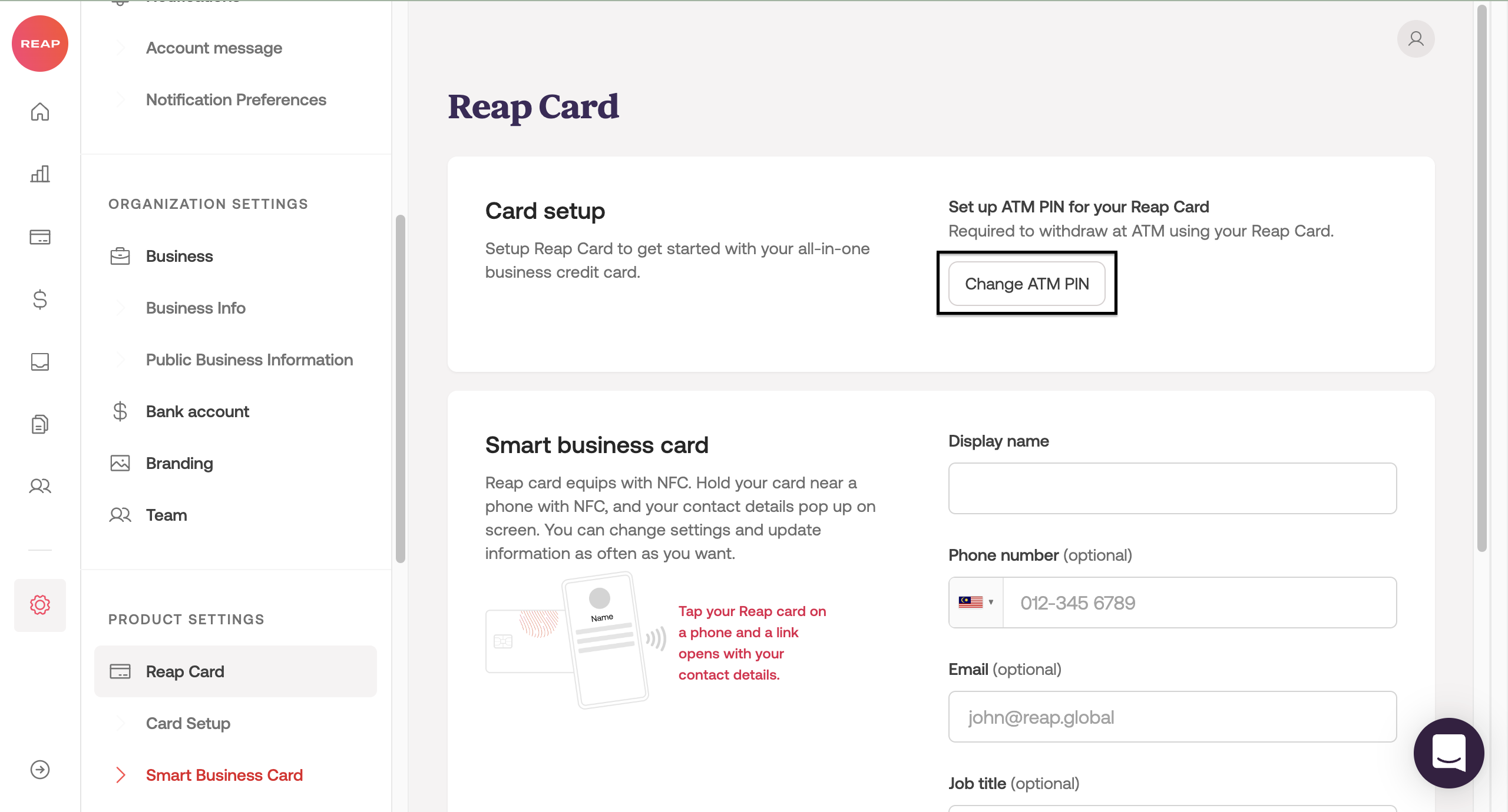 Please note that there will be a 2% ATM withdrawal fee as Reap's handling fee (not including the ATM handling fees) for every withdrawal.