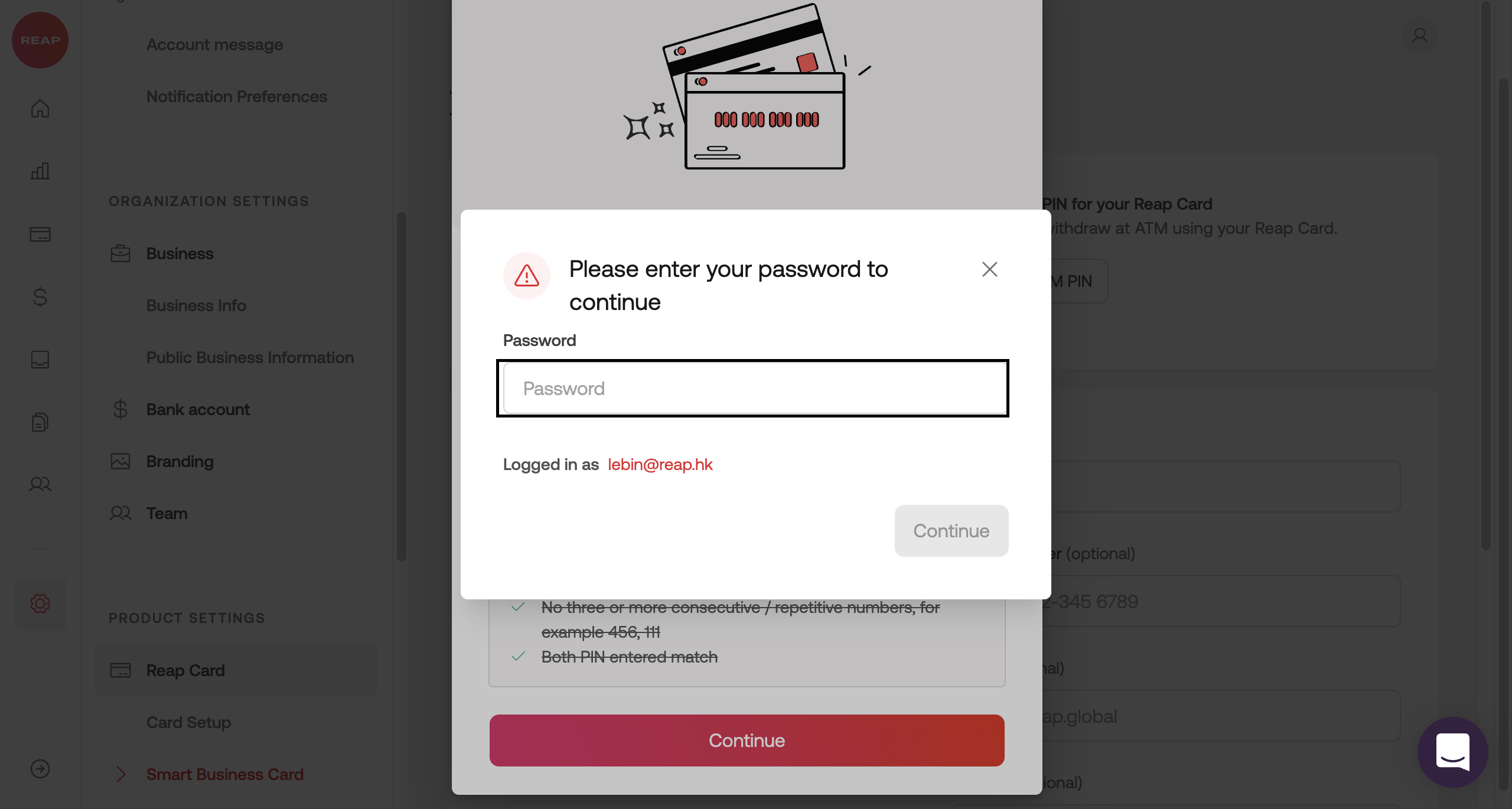 Step 5: Enter your Reap login password, and then click Continue. You are all set!