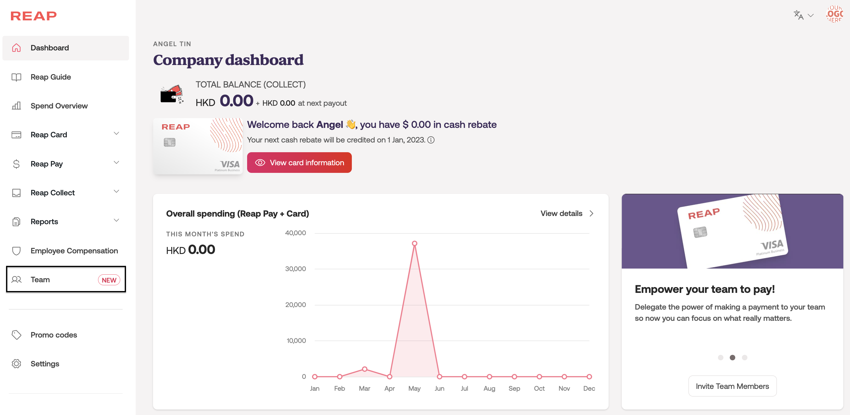 Step 1: Click on the Team tab after logging into the Reap dashboard