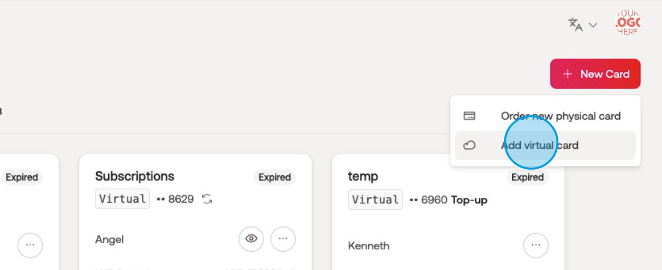 Select "Add virtual card."