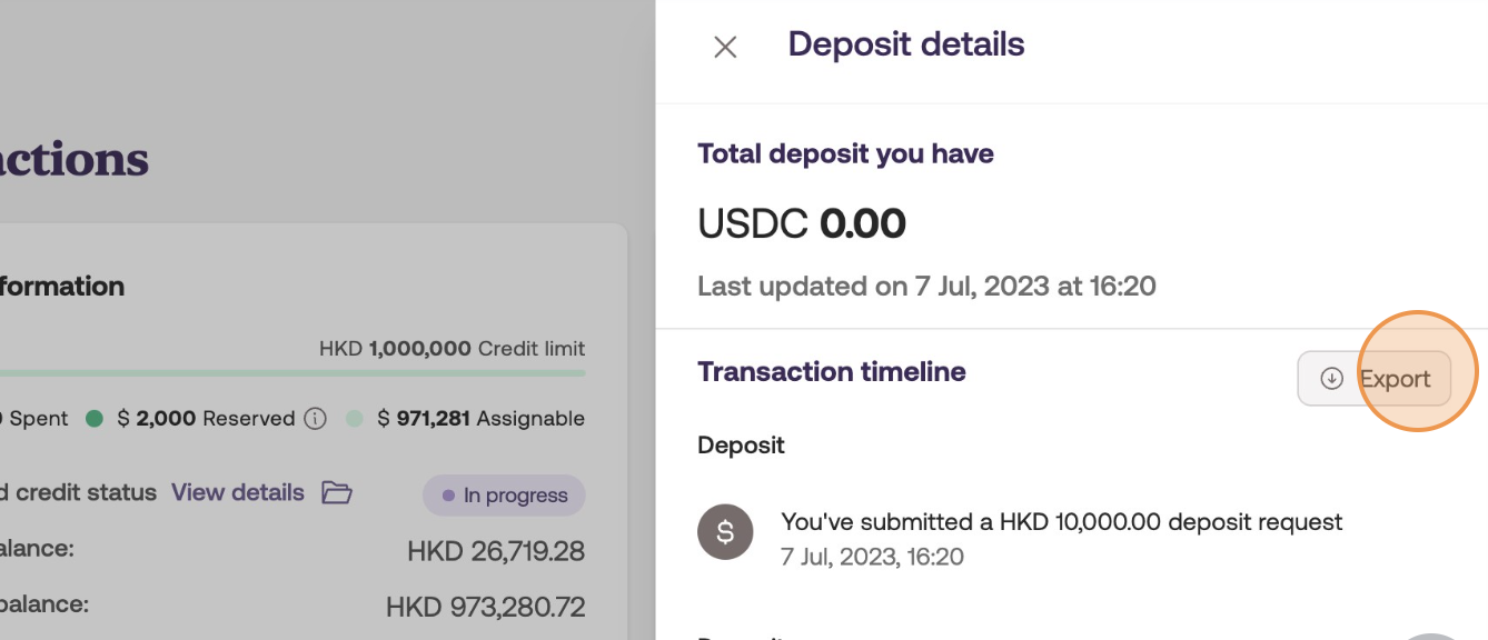 After you have placed some collateral as a deposit to increase your company's credit limit, you can also export the log in a CSV file for record-keeping purposes.