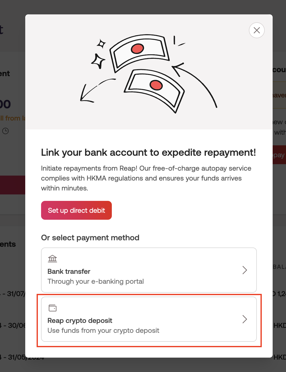 **Should you wish to make a repayment with your fiat deposit, kindly reach out to your respective Relationship Manager or the Reap Customer Success team at hello@reap.global for further assistance