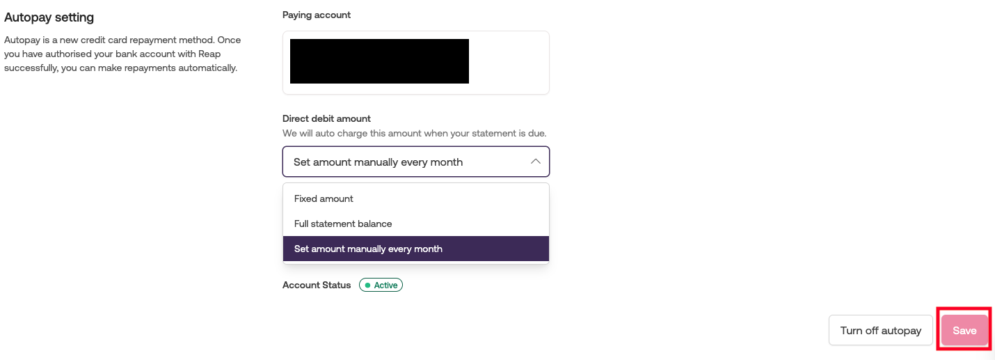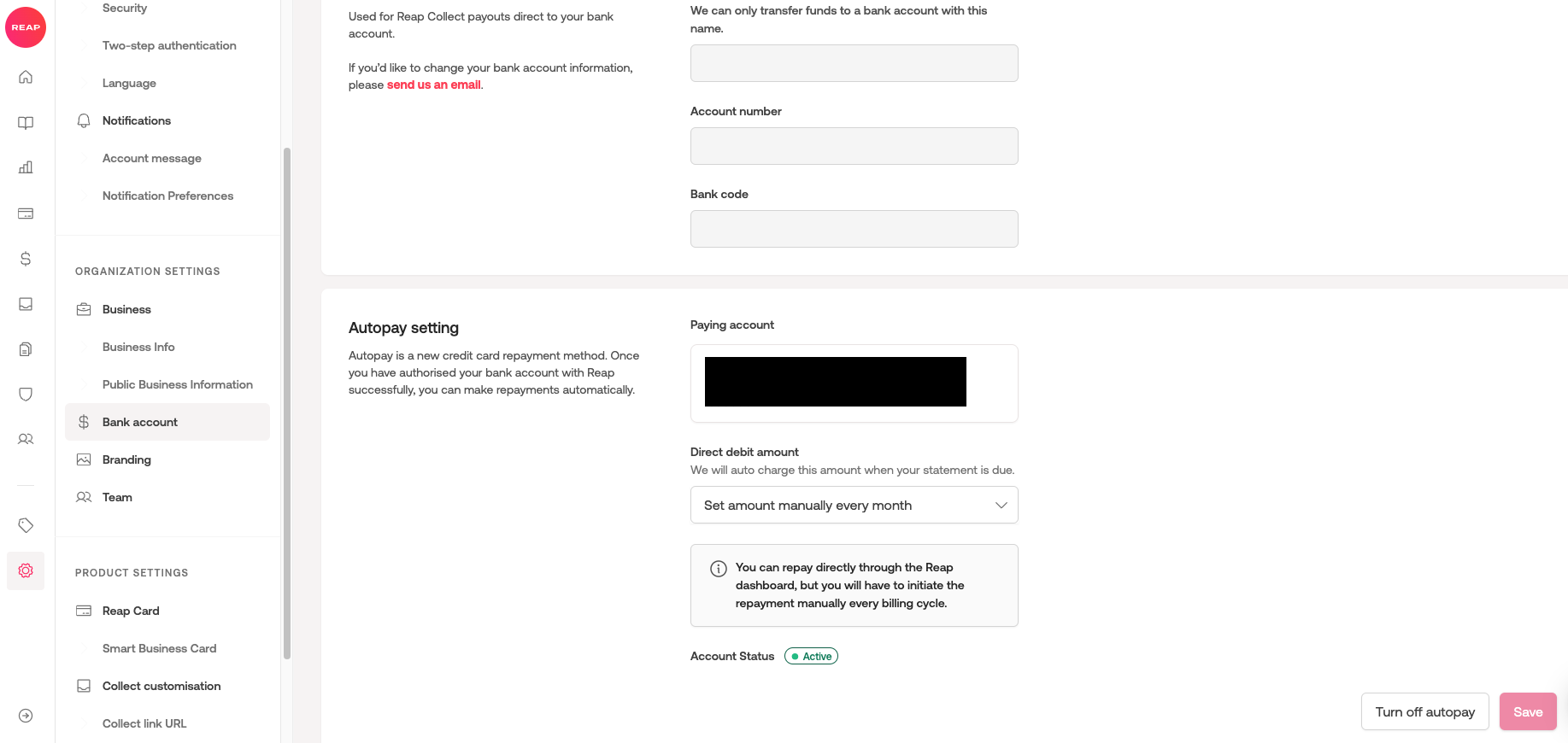 After the completion, if you need to set up autopay again in the future, you can set up eDDA from the Reap dashboard again.