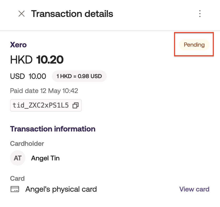 After Reap verifies the transaction, we will put a hold on the funds in your Reap Card account. The transaction is now Pending.