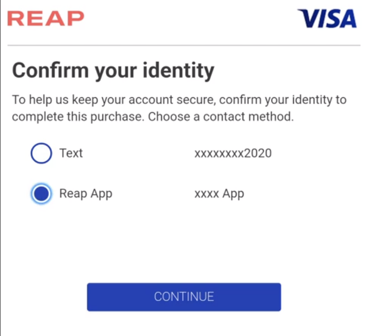 Choose Reap App as the verification method: you will only see the second option if your device has the app installed.