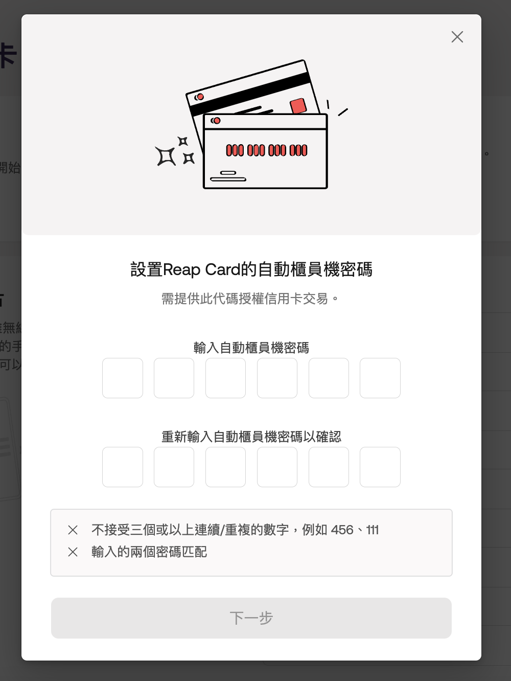 第四步:輸入你選擇的六位數自動櫃員機密碼,然後點擊「下一步」以繼續進行。