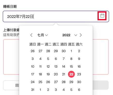 同時,請記錄轉賬日期。如果你在較早前已進行轉賬,請選擇相應日期。