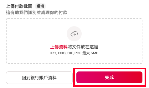 最後,你可上載銀行轉賬的截圖以作記錄,並按下完成即可。