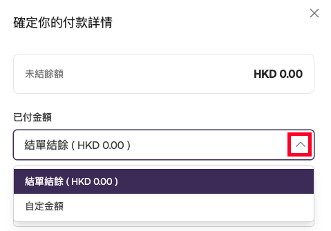如你沒有支付全部餘額,請在下拉選單中選擇自訂金額選項,然後輸入還款金額。
