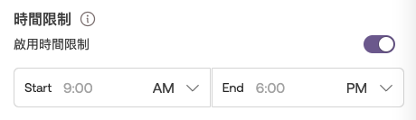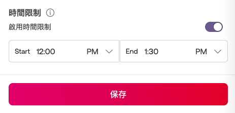 第 1 步:要限制使用 Reap Card 的時間,請先開啟時間限制開關。