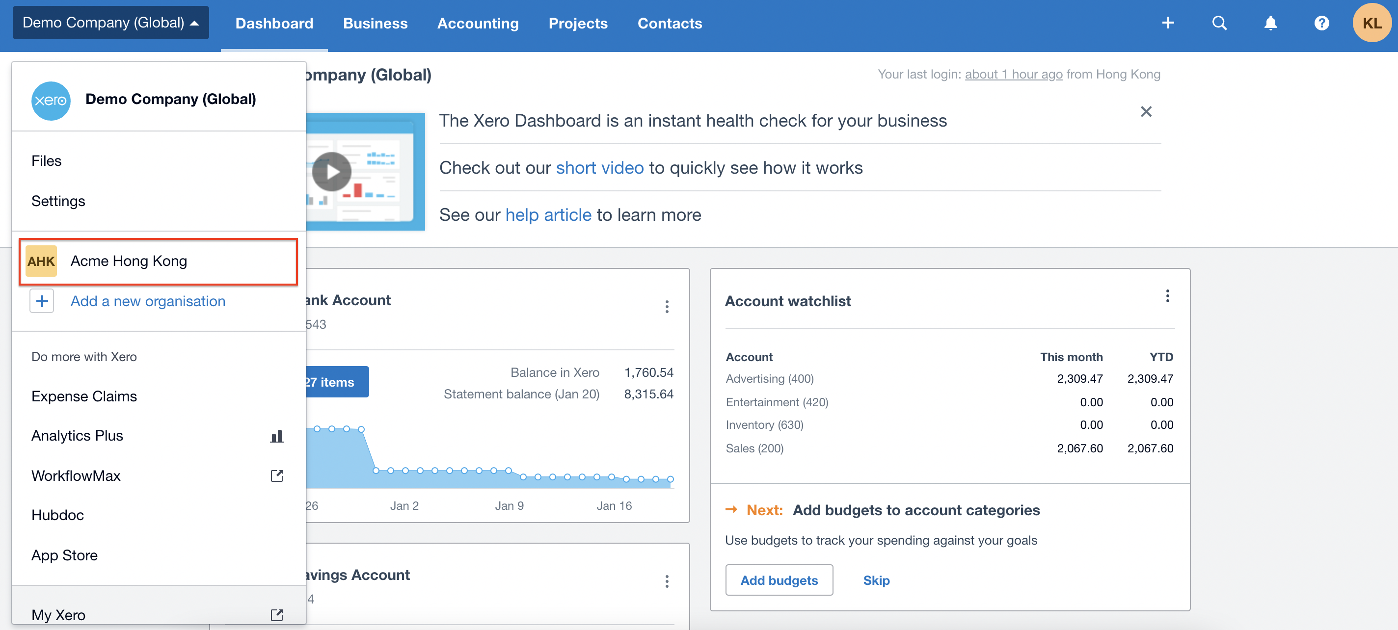 在會計軟件的主清單上,你會看見Reap Card帳戶已成功添置。