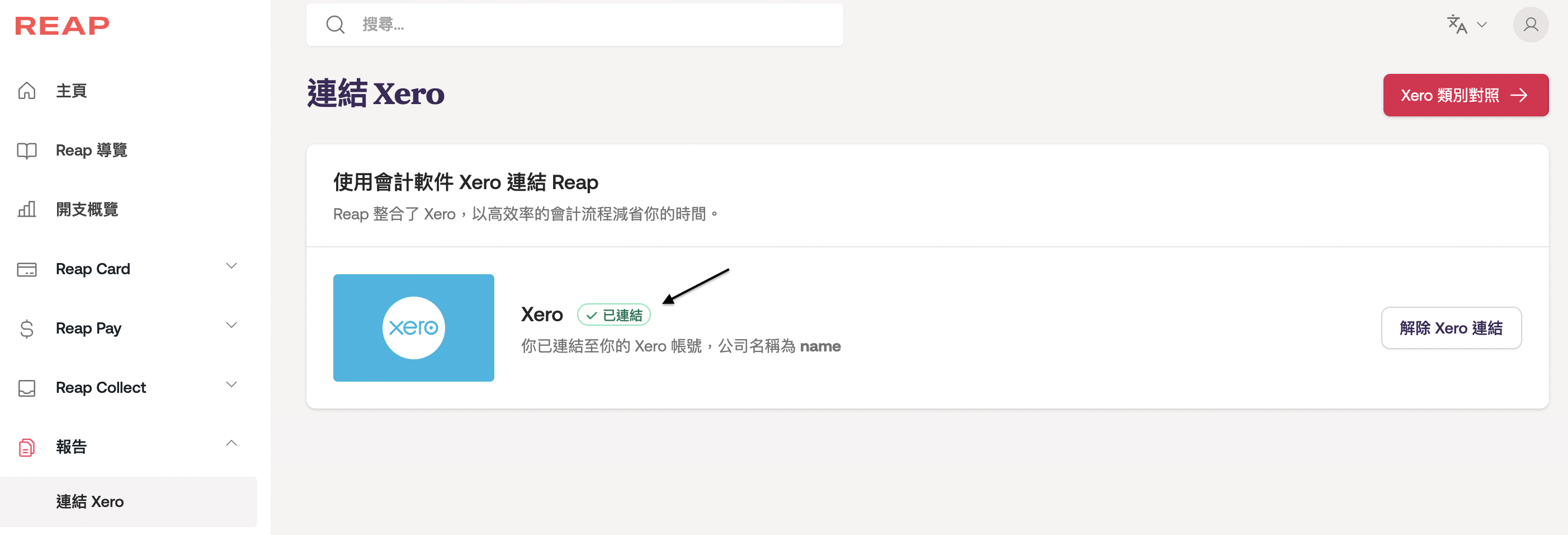 第三步:輸入會計軟件的登入資料後,容許Reap連結至會計軟件的權限。成功連結後,Reap dashboard顯示的連結狀態將更新為✓已連結。