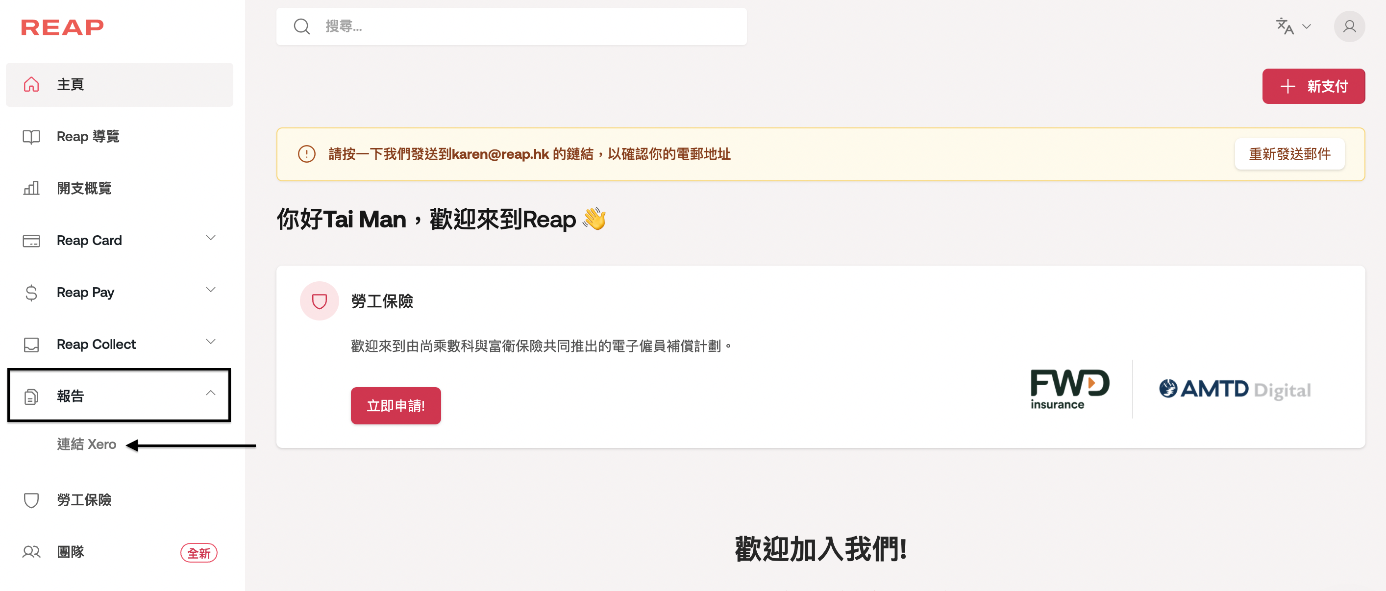 第一步:登入到Reap後,點擊報告 -> 連結